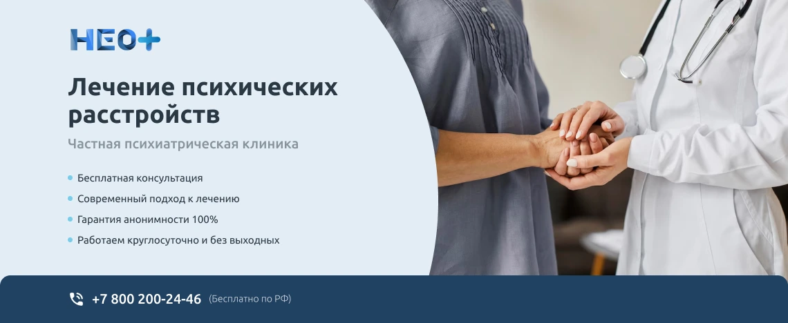 Записаться на прием к врачу-психиатру можно на официальном сайте клиники «НеоПлюс» в Порхове или по телефону ☎️ +7 (800) 200-24-46. Звоните нам, не запускайте проблему. Мы знаем, как вернуть здоровье и покой в Вашу семью!